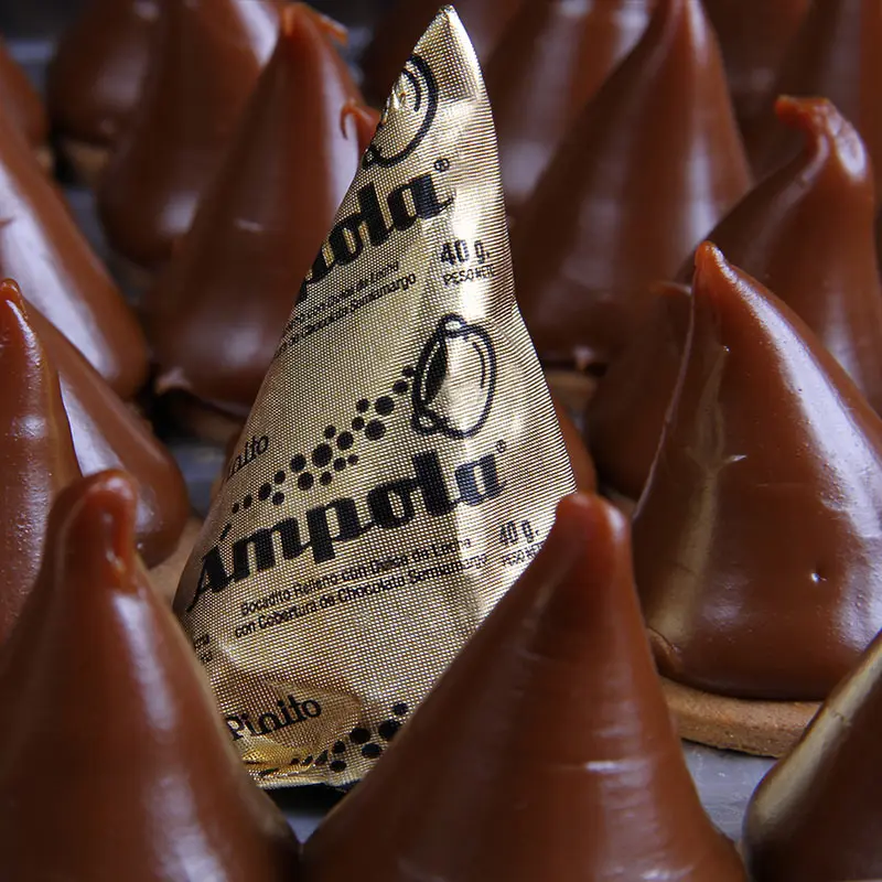 PINITOS: Tradicionales conitos rellenos con exquisito dulce de leche, cubiertos con chocolate semiamargo.