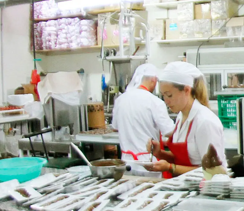 La higiene, el orden, todas las personas que participan en cada etapa y el cuidadoso control de calidad garantizan nuestro objetivo prioritario:lograr los sabores, colores, brillo, texturas y aromas que caracterizan por su excelencia a nuestros productos.